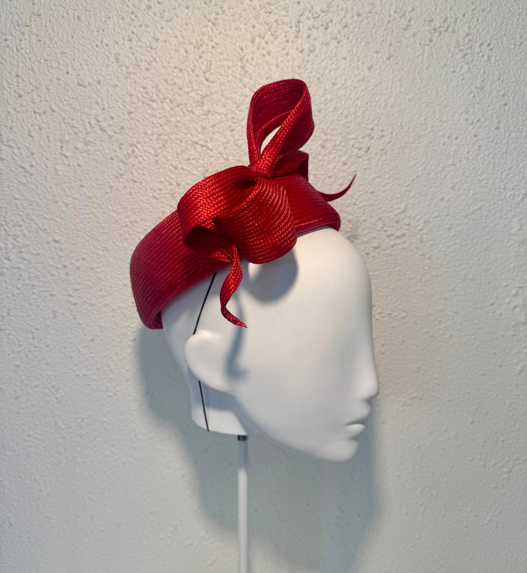 Gorgeous bright red pillbox with classic rolled bow details